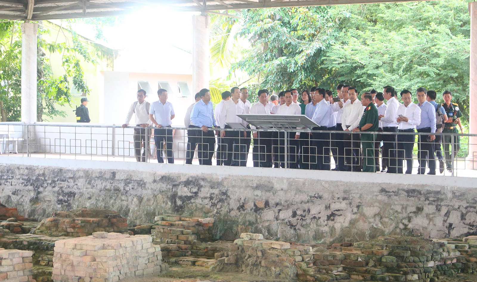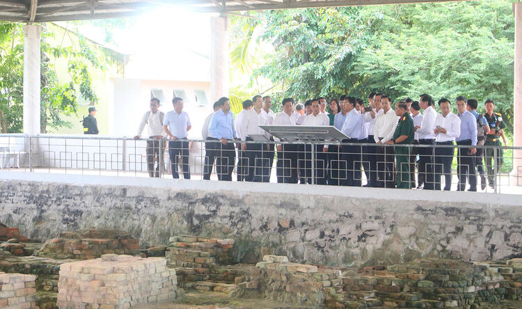 Đoàn công tác do Phó Thủ tướng Chính phủ Bùi Thanh Sơn dẫn đầu, khảo sát thực tế tại Khu di tích quốc gia đặc biệt Óc Eo - Ba Thê. Ảnh: PHƯƠNG LAN