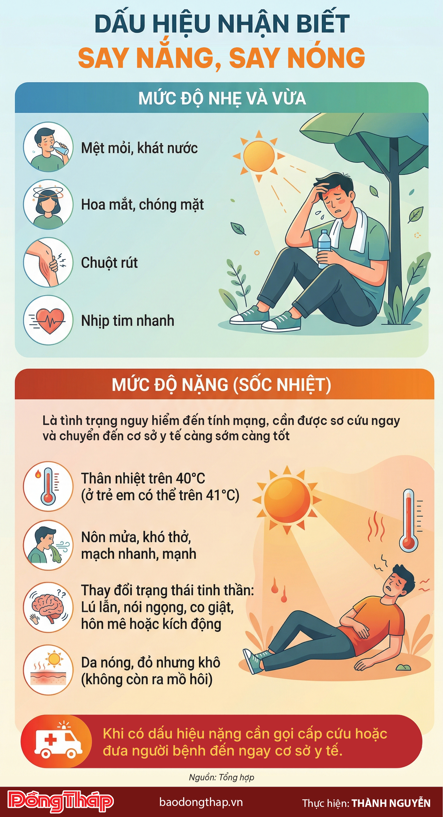 Mức độ nhẹ và vừa: Mệt mỏi, khát nước, hoa mắt, chóng mặt, chuột rút, nhịp tim nhanh.