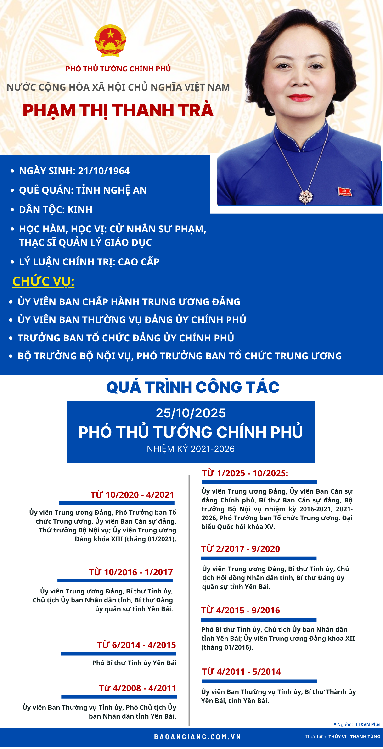 [Infographics] - Bà Phạm Thị Thanh Trà là nữ Phó Thủ tướng đầu tiên trong lịch sử Việt Nam