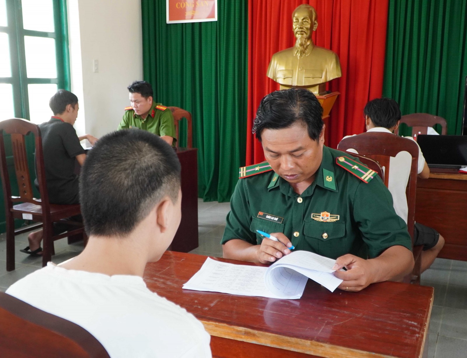 Lực lượng chức năng lấy lời khai của công dân.