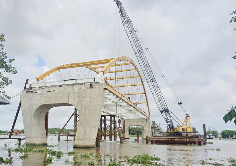 Thi công cầu Vĩnh Tuy, thuộc dự án đường Hồ Chí Minh đoạn Rạch Sỏi - Bến Nhứt, Gò Quao - Vĩnh Thuận.