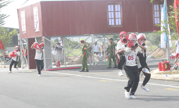 Các đội thi đấu nghiệp vụ thực hành chữa cháy, cứu nạn, cứu hộ.