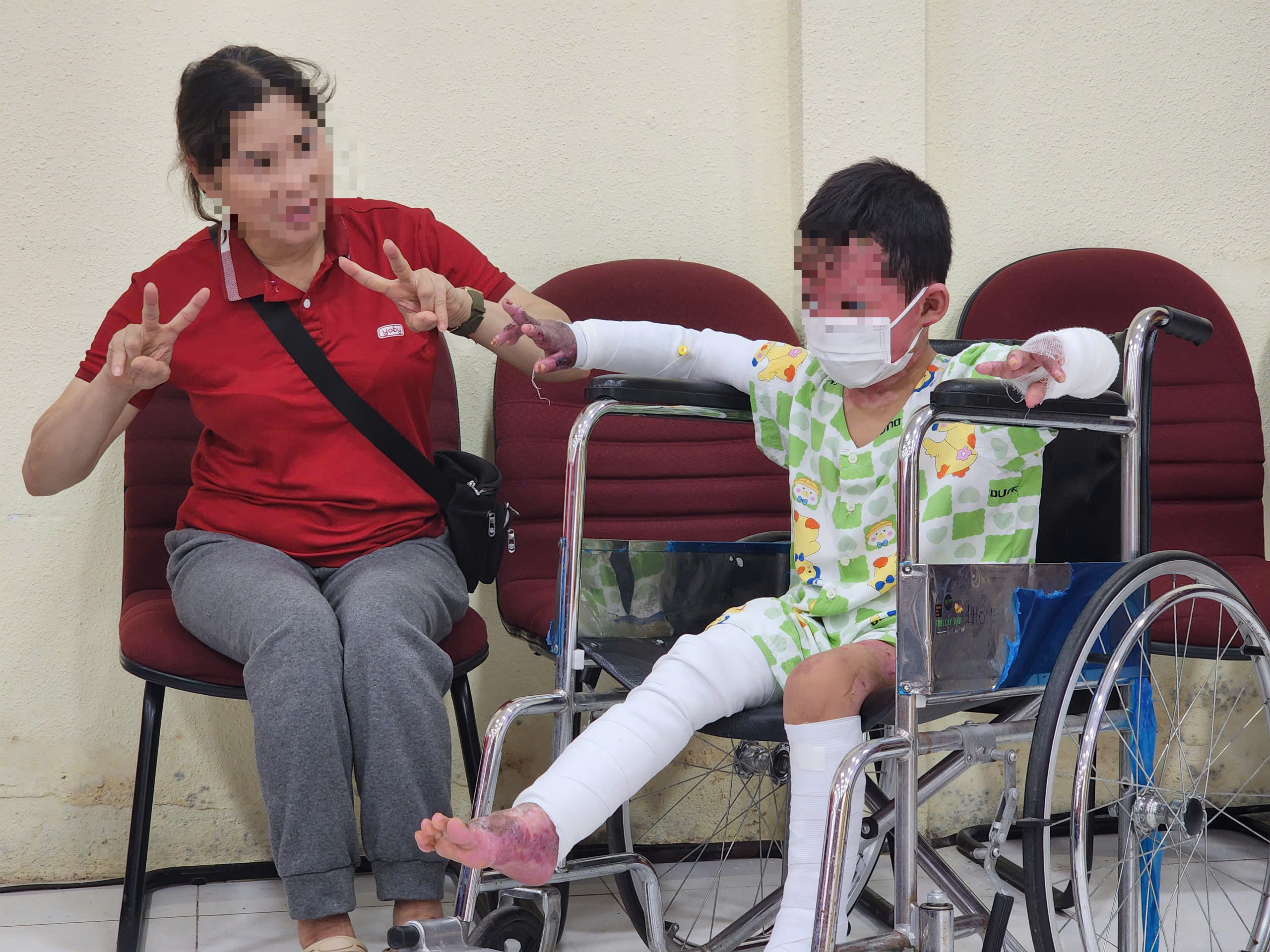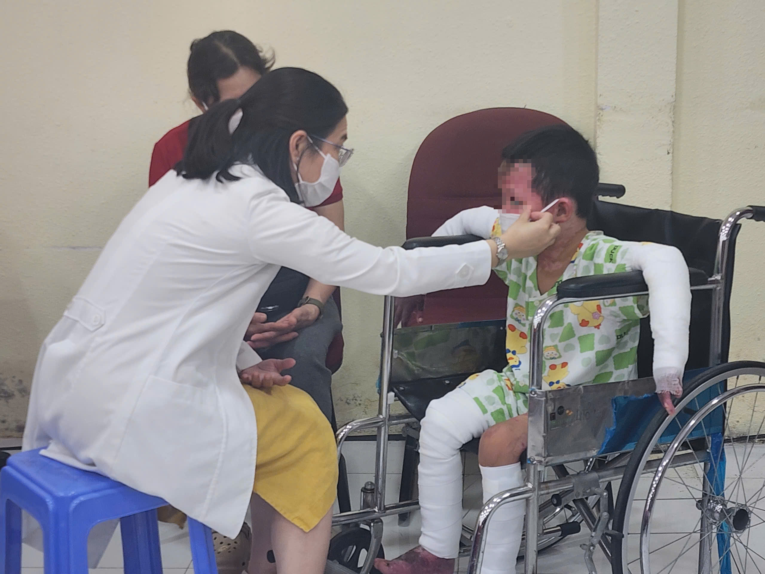 Trong quá trình điều trị, bé được bà nội và người thân hai bên thay phiên chăm sóc. Tâm lý bé hiện ổn định, vui vẻ; khi tái khám sẹo, bác sĩ sẽ phối hợp thêm chuyên khoa tâm lý và vật lý trị liệu để hỗ trợ lâu dài. Dự kiến bé có thể xuất viện trong tuần tới nếu tình trạng hoàn toàn ổn định.