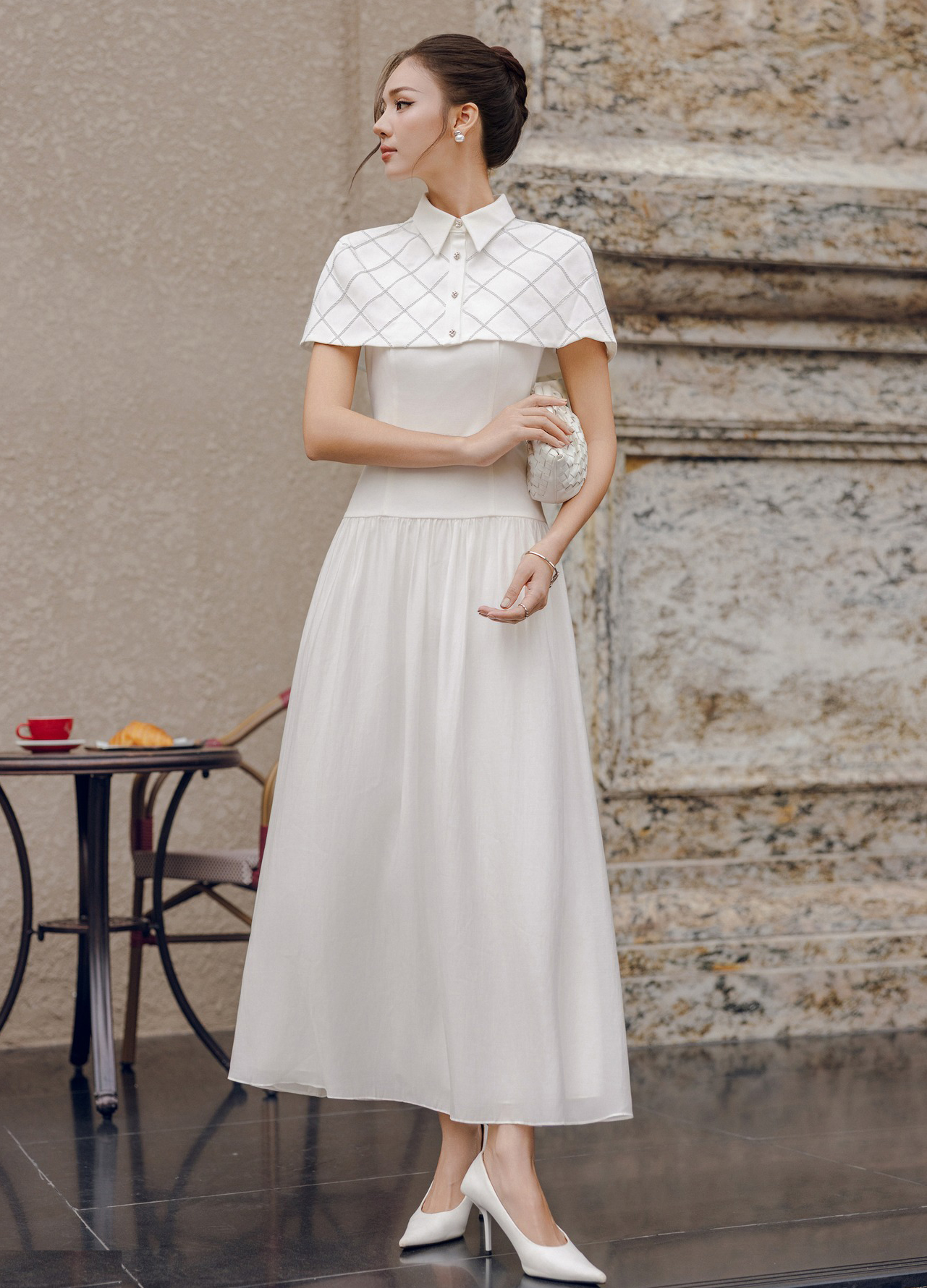 Váy trắng không bao giờ khiến nàng thất vọng nhờ vẻ đẹp vượt thời gian. Thiết kế gây chú ý với phần cổ áo cách điệu điểm họa tiết ô quả trám giúp nàng nổi bật vẻ quý phái và trang nhã. ẢNH: PANTIO