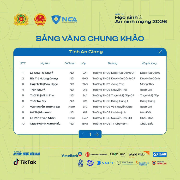 Lễ trao giải Cuộc thi “Học sinh với An ninh mạng 2026” đã diễn ra tại Hà Nội. Đây là sân chơi do Bộ Công an và Bộ Giáo dục và Đào tạo bảo trợ, do Hiệp hội An ninh mạng quốc gia chủ trì, phối hợp Cục An ninh mạng và phòng, chống tội phạm sử dụng công nghệ cao, Bộ Công an; Cục Khoa học, Công nghệ và Thông tin (Bộ Giáo dục và Đào tạo) cùng các đơn vị đồng hành tổ chức.