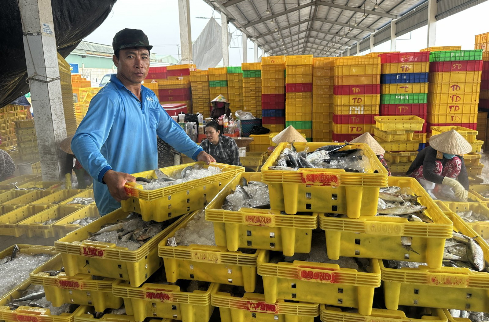Công nhân phân loại thủy sản tại cảng cá Tắc Cậu