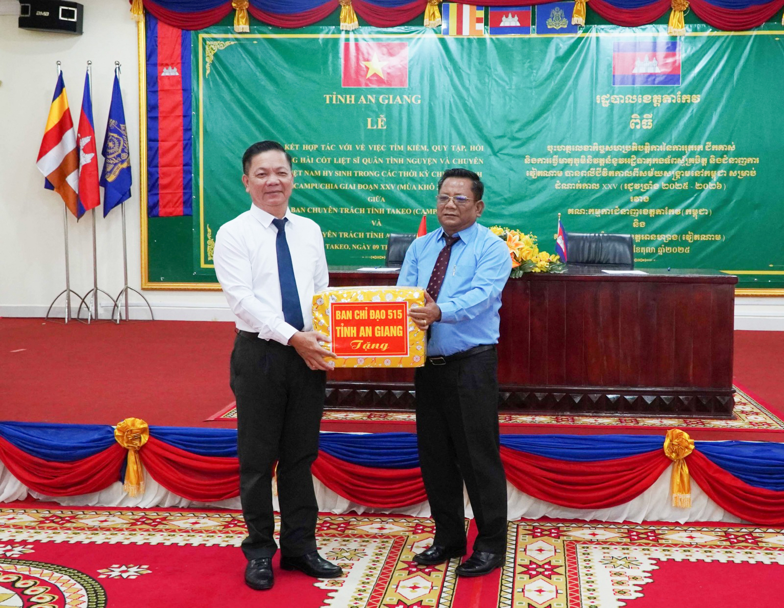 Đại diện Sở Nội vụ tỉnh An Giang trao tặng quà tỉnh Takeo.
