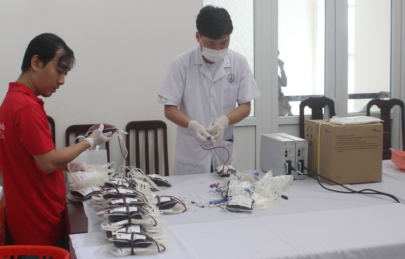 Đơn vị máu thu về tại lễ phát động hiến máu tình nguyện.
