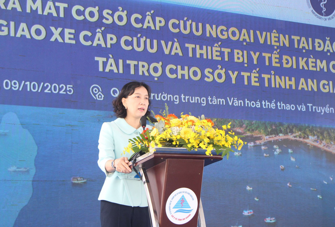 Phát biểu tại buổi lễ, Phó Chủ tịch UBND tỉnh An Giang Nguyễn Thị Minh Thúy nhấn mạnh, đây là sự kiện quan trọng trong triển khai Đề án thí điểm cấp cứu ngoại viện giai đoạn 2025 - 2027 và những năm tiếp theo, theo đúng tinh thần chỉ đạo của Bộ Y tế và sự đồng thuận của lãnh đạo tỉnh.