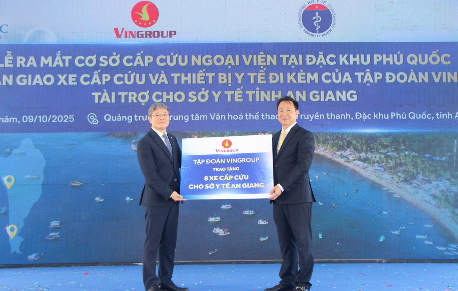 Tại lễ ra mắt, Vingroup bàn giao 10 xe cứu thương (8 xe đợt 1) và trang thiết bị y tế hiện đại cho Cơ sở cấp cứu ngoại viện đặc khu Phú Quốc. Mỗi xe được trang bị máy thở, máy sốc điện tích hợp monitor, siêu âm xách tay FAST exam, điện tim 12 đạo trình kết nối từ xa, bộ đặt nội khí quản có camera, nẹp cố định chấn thương và đầy đủ dụng cụ hồi sức. Tất cả được thiết kế và trang bị theo tiêu chuẩn quốc tế EN 1789:2020, tuân thủ Quy chuẩn kỹ thuật quốc gia QCVN 31:2012/BYT của Bộ Y tế Việt Nam.