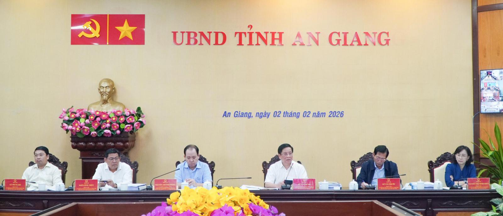 Chủ tịch UBND tỉnh Hồ Văn Mừng và các Phó Chủ tịch UBND tỉnh An Giang tại hội nghị.