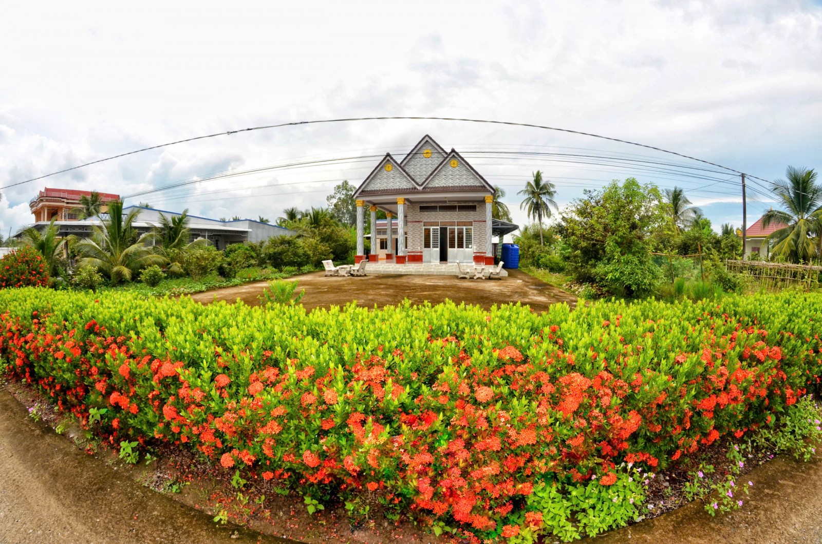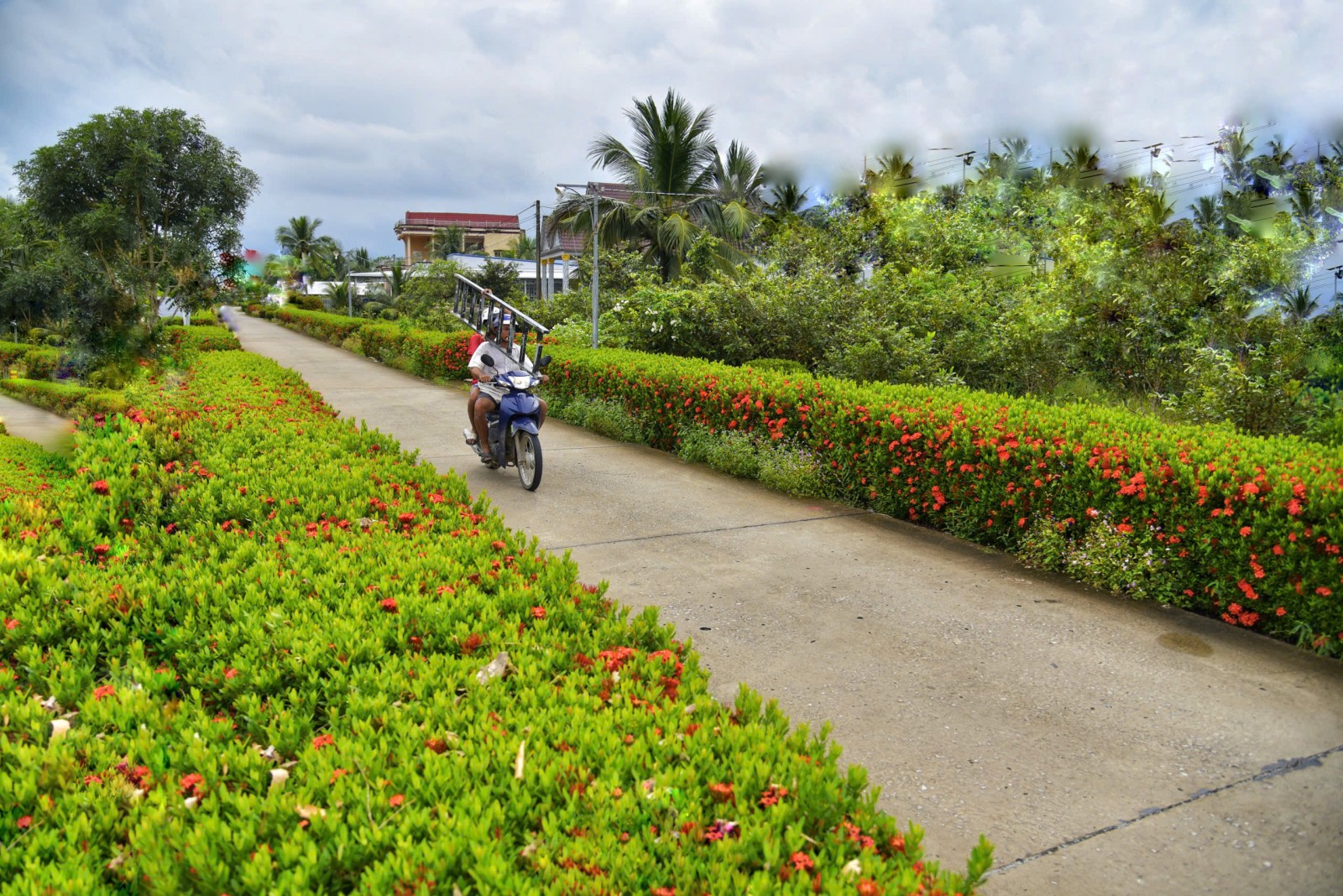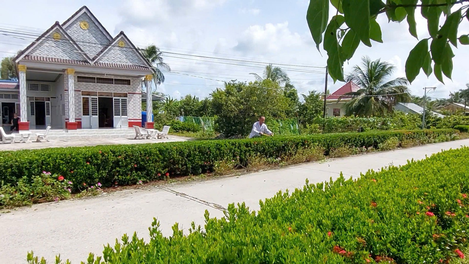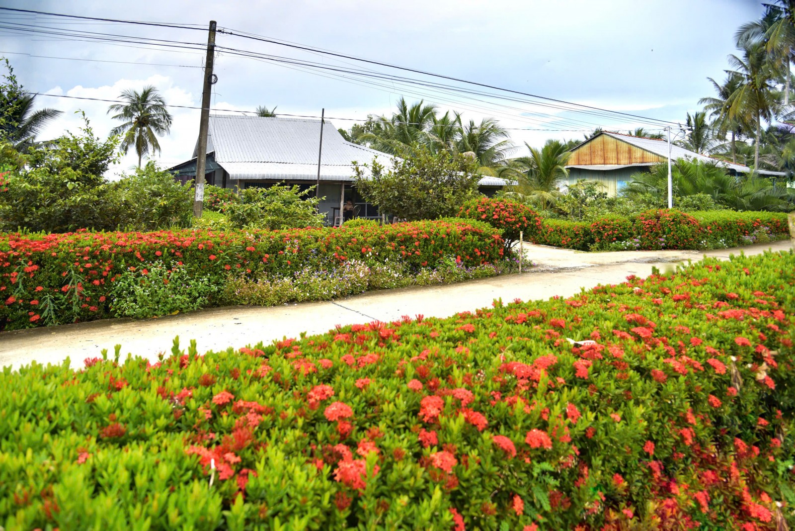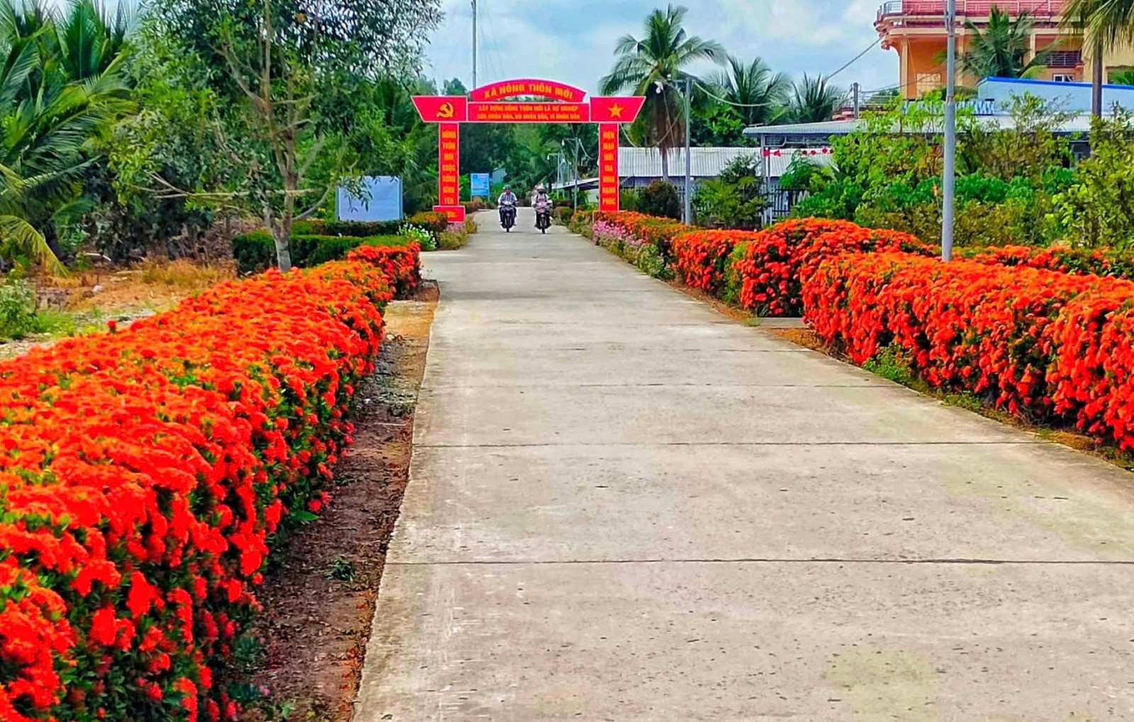 Đường giao thông ở ấp 1 nay thêm hàng rào bông trang, sáng - xanh - sạch - đẹp.