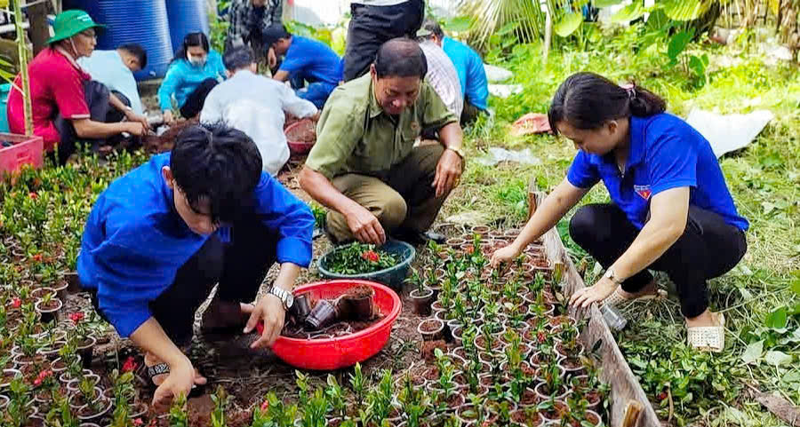 Những ngày đầu, người dân được tặng cây giống, cùng nhau nhân rộng hoa ra khắp xóm.