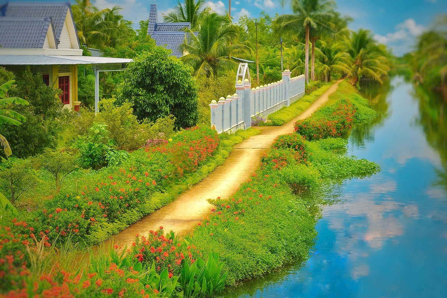Mỗi con đường, mỗi ngôi nhà là nét chấm xanh của tình làng nghĩa xóm, của niềm tự hào quê hương đổi mới. An Minh hôm nay rực rỡ hơn, những tuyến đường hoa nối dài, hàng rào cây xanh đan sắc, làm nên diện mạo nông thôn mới căng đầy sức sống.