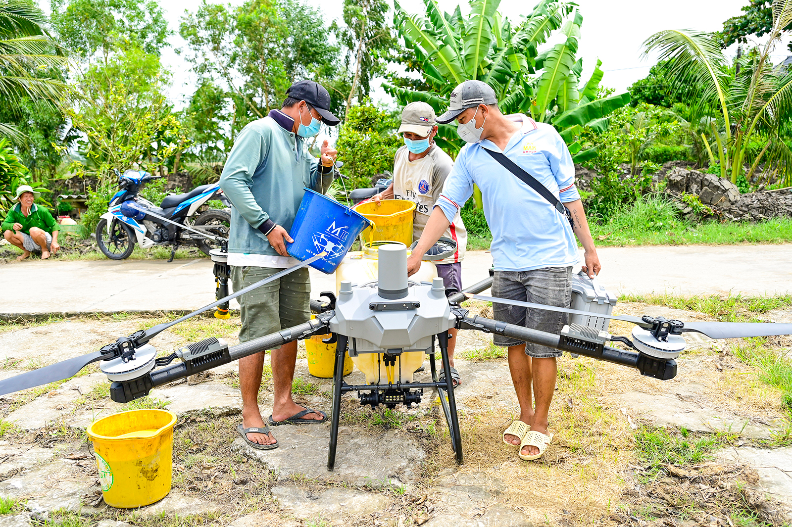 Thành viên Hợp tác xã dịch vụ cung ứng - sản xuất lúa sạch Lò Rèn áp dụng tiến bộ khoa học, kỹ thuật vào sản xuất nông nghiệp, giúp giảm giá thành đầu vào, tăng lợi nhuận đầu ra. Ảnh: PHẠM HIẾU