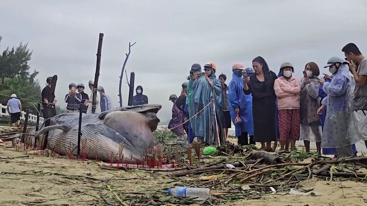 Cá Ông có chiều dài khoảng 3 - 4 m, thân màu xám đen, phần bụng trắng trôi dạt vào bờ biển thuộc bãi tắm Liên Chiểu, đường Nguyễn Tất Thành. Nhiều người dân địa phương đã đến khu vực này để thắp hương theo tục lệ ngư dân ven biển, thể hiện sự kính trọng đối với cá Ông - vị thần được xem là bảo hộ của ngư dân trên biển.