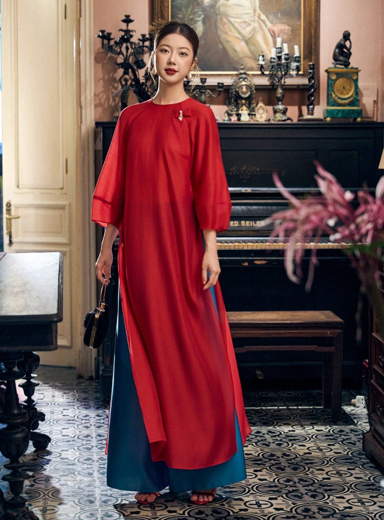 Tiếp tục dòng chảy nữ tính của những chiếc áo dài suông mềm bay bổng lãng mạn, các thiết kế áo dài cách tân mùa tết 2026 vẫn dành sự ưu ái đáng kể cho các thiết kế vải tơ voan mỏng nhẹ và có độ bay. Dáng áo dài suông rộng rãi, phần tay vai được tính toán kỹ để vừa giữ lại nét đẹp thướt tha nguyên bản của áo dài, vừa mang lại sự thoáng mát và thoải mái nhất định cho người mặc.