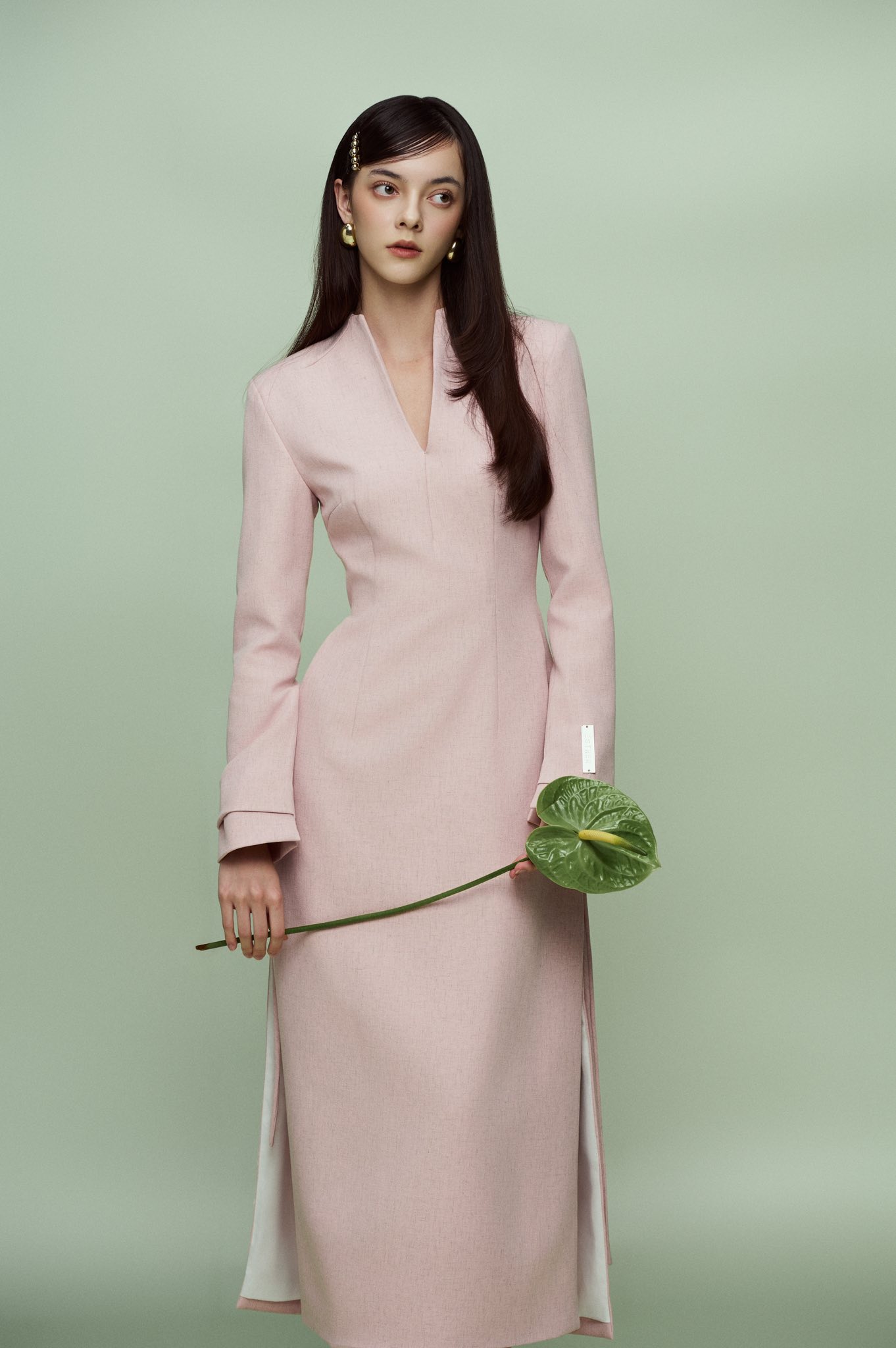 Các thiết kế cách tân nằm trong bộ sưu tập Ethereal Reborn được truyền cảm hứng từ những nét đẹp di sản - chiếc áo yếm của người phụ nữ xưa và áo dài thanh lịch cuối thế kỷ 20, mang nét đẹp mềm mại, thanh khiết và đầy bản sắc trên các gam màu hồng phấn, trắng ngà, đỏ và đen.
