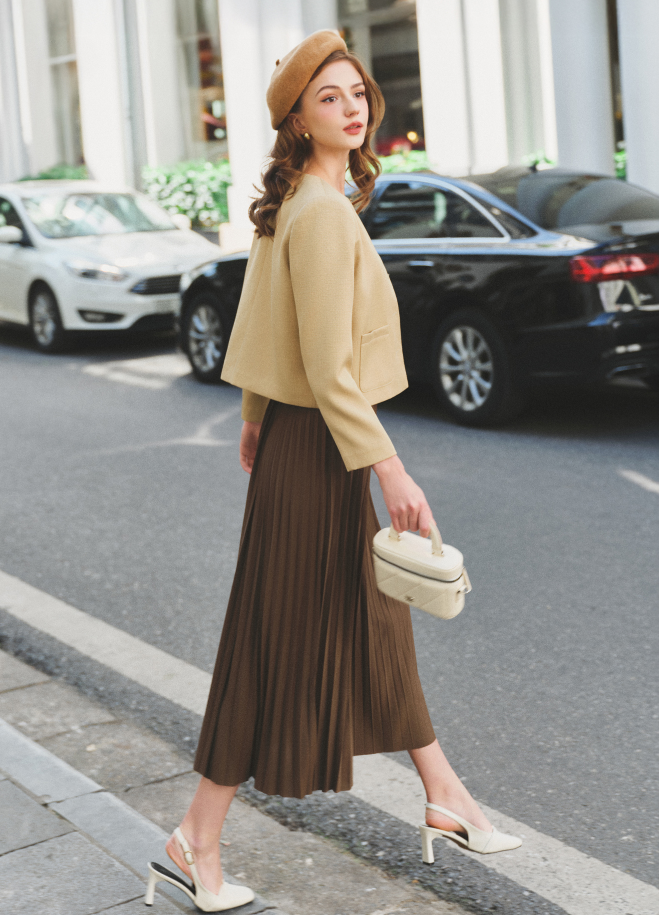 Công thức mặc đẹp dễ áp dụng nhất luôn đơn giản và hướng đến các món đồ cơ bản, thiết yếu có trong tủ đồ. Áo khoác dáng ngắn và váy dài chính là đáp án cho mọi "bài toán" mặc đẹp để nàng đi học, đi làm, đi chơi.