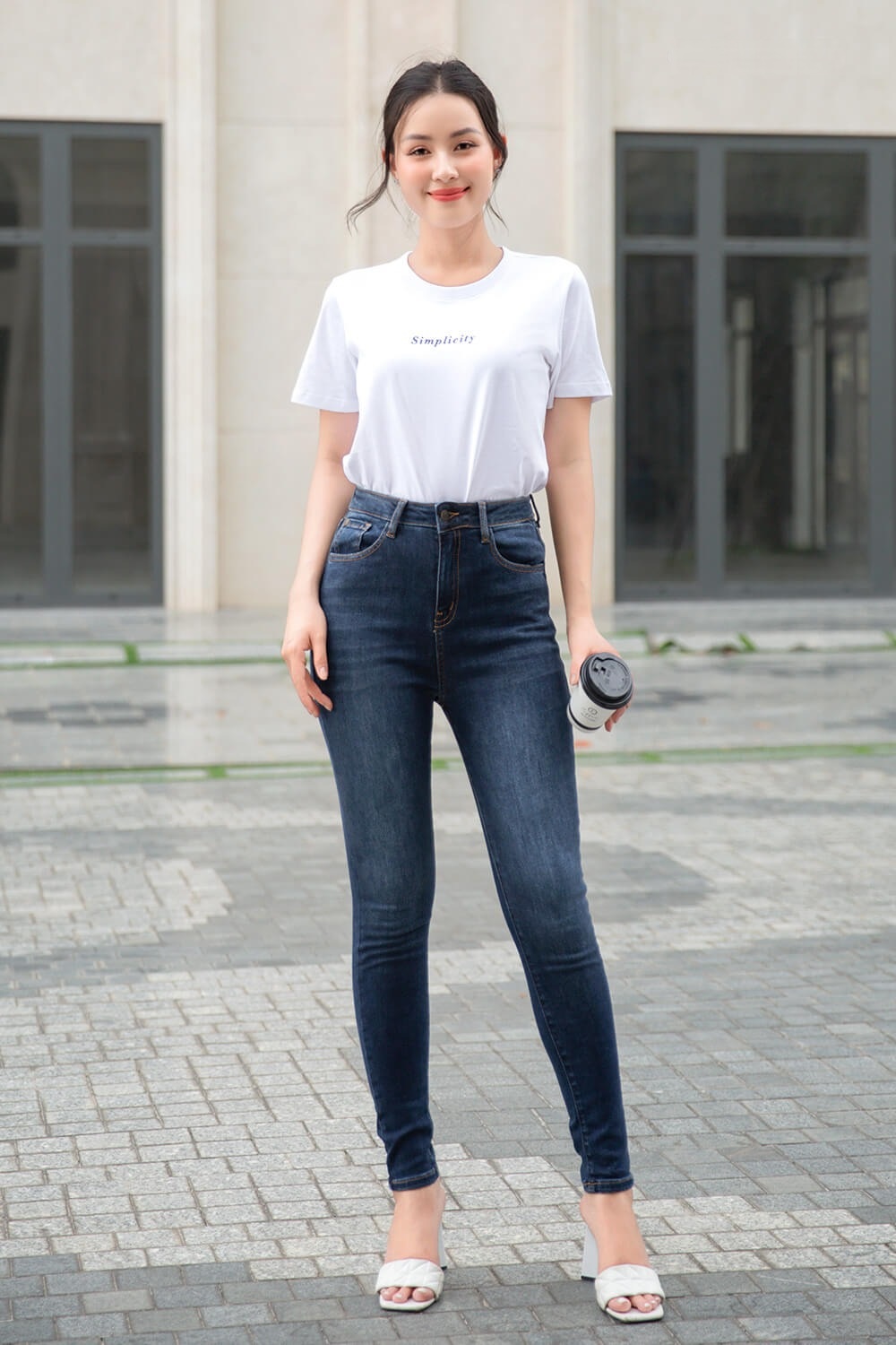 Áo thun trắng phối quần jeans