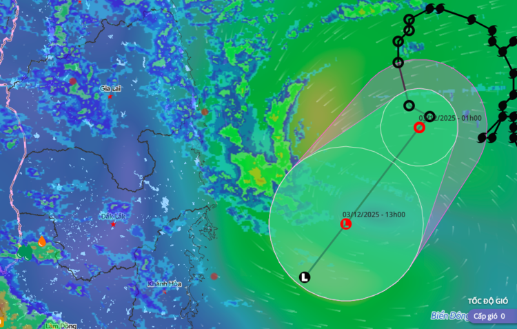 Dự báo, trong 12 giờ tới, tức đến 13 giờ ngày 3-12, áp thấp nhiệt đới ở vào khoảng 12,7 độ Vĩ Bắc; 110,7 độ Kinh Đông, trên vùng biển Đắk Lắk - Khánh Hòa và suy yếu dần thành vùng áp thấp (gió dưới cấp 6), tiếp tục di chuyển theo hướng Nam Tây Nam với tốc độ 5-10 km/giờ.