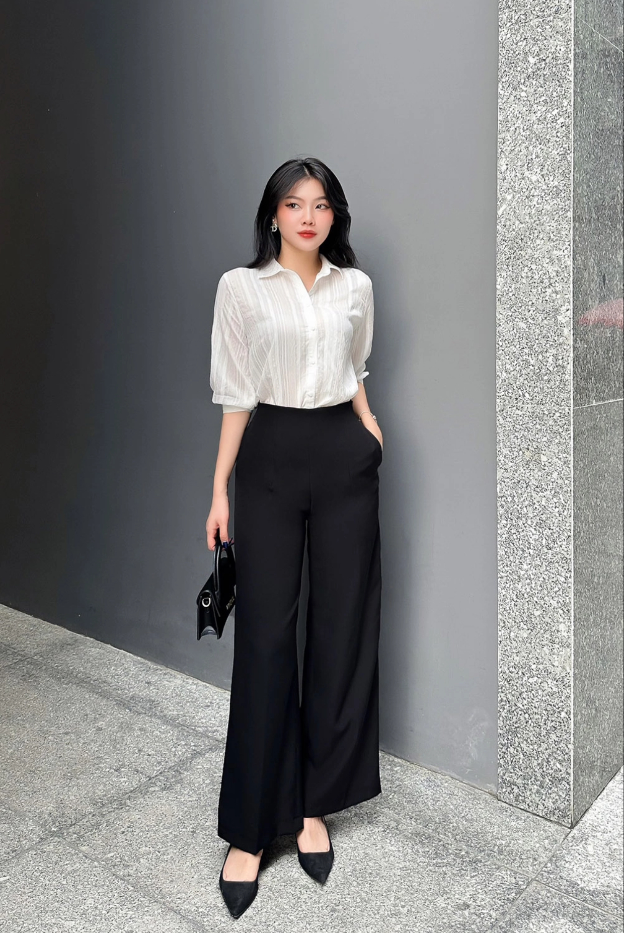 Bản phối kinh điển đen trắng: áo sơ mi trắng và quần đen