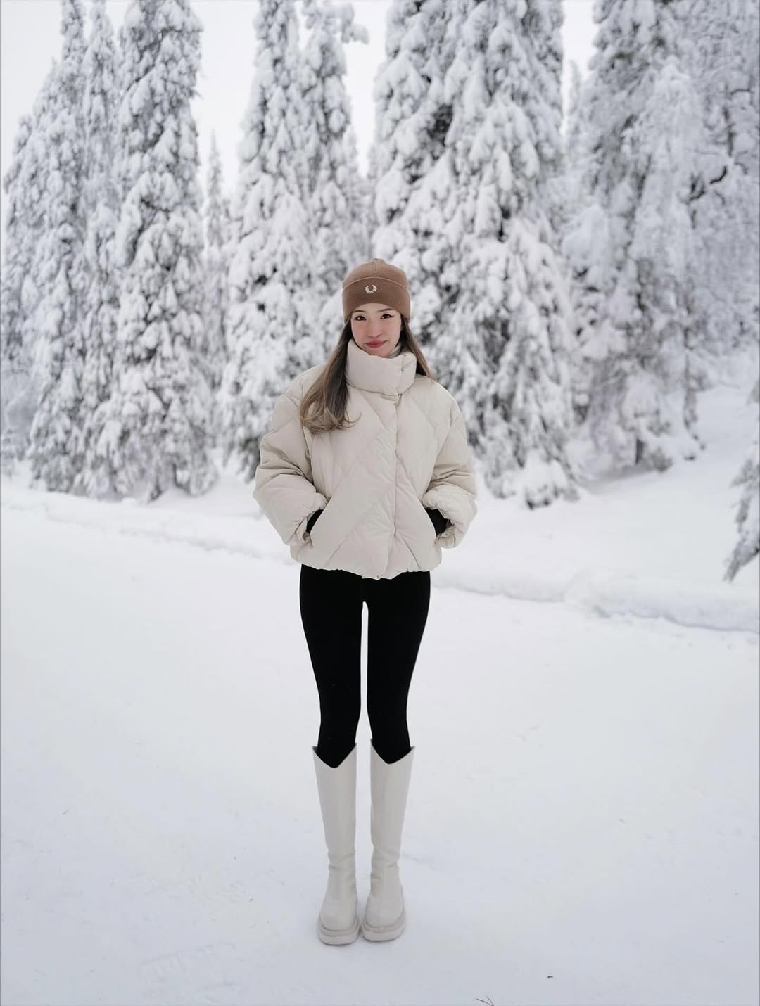 Trong những ngày thời tiết trở lạnh, công thức phối đồ gồm bốt cổ cao cùng áo phao luôn được phái đẹp ưa chuộng nhờ tính ứng dụng cao. Quần legging ôm dáng giúp giữ ấm nhưng vẫn tôn lên đường cong tự nhiên, tạo cảm giác gọn gàng và thoải mái khi di chuyển. Trong khi đó, áo phao đóng vai trò giữ ấm ngày lạnh, thiết kế dáng ngắn cân bằng tỷ lệ cơ thể, khiến người mặc trông cao và thanh thoát hơn. Khi kết hợp cùng bốt cao cổ mũi tròn, đôi chân được “kéo dài” một cách tinh tế, từng bước đi trở nên chắc chắn và đầy tự tin.