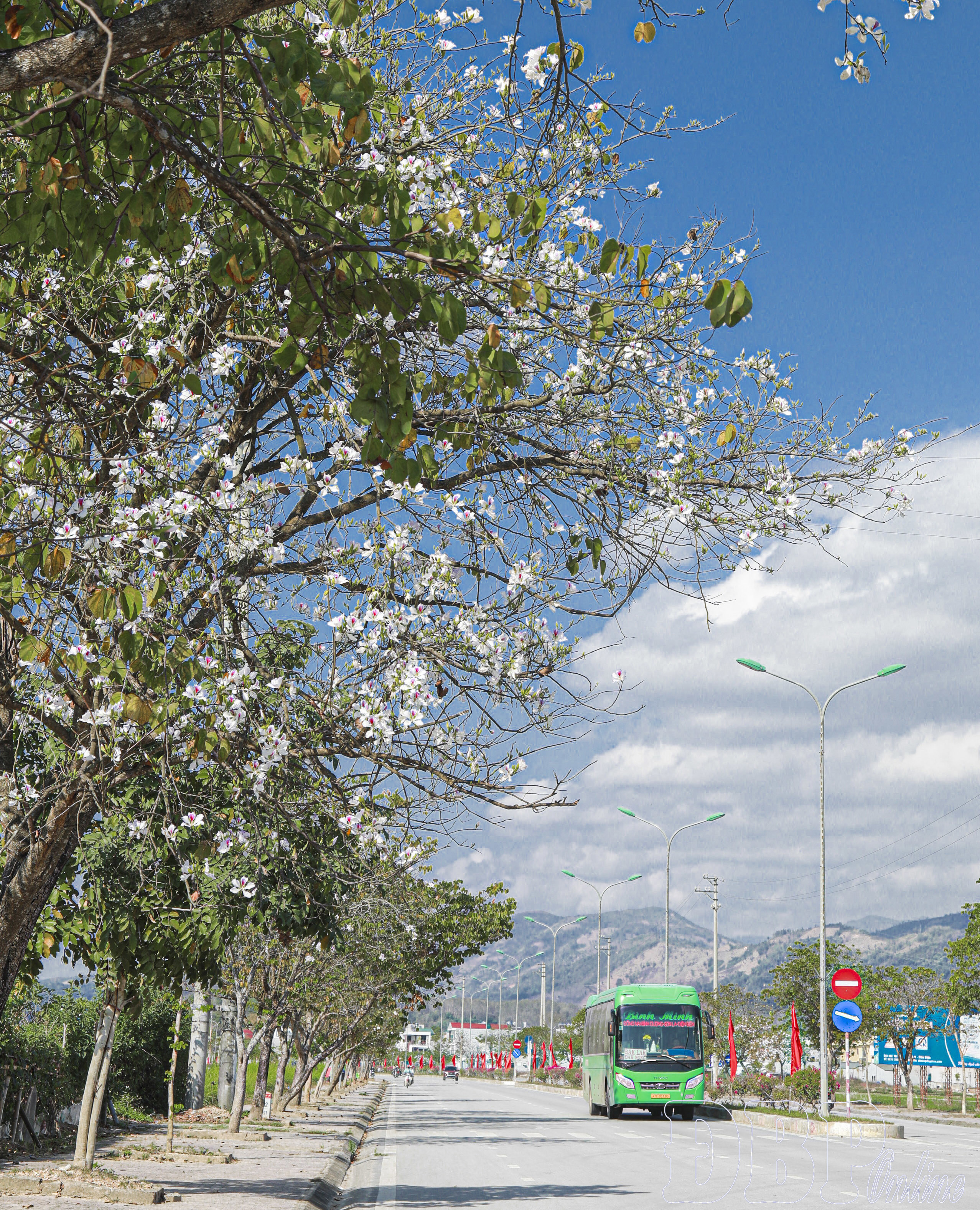 Hoa ban bung nở trên tuyến Quốc lộ 12.