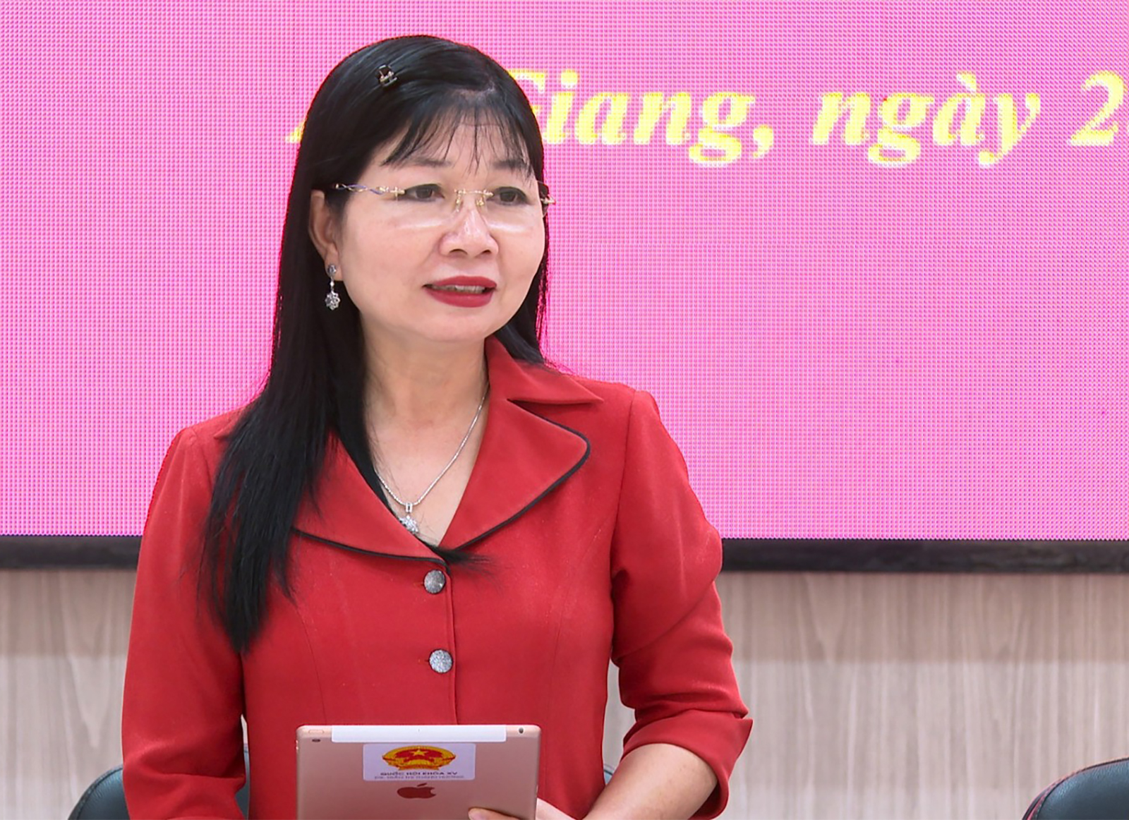 Phó Bí thư Tỉnh ủy, Chủ tịch Ủy ban MTTQ Việt Nam tỉnh An Giang Trần Thị Thanh Hương phát biểu chỉ đạo tại buổi làm việc.