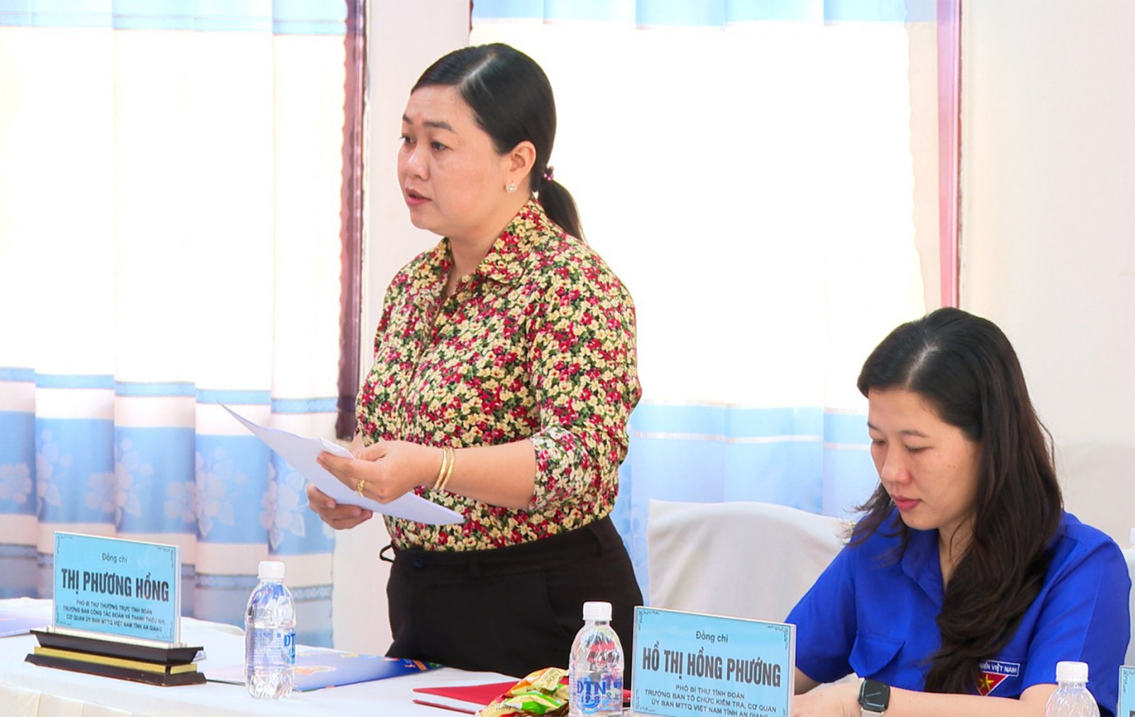 Phó Bí thư Thường trực Tỉnh đoàn An Giang Thị Phương Hồng (đứng) báo cáo tại buổi làm việc
