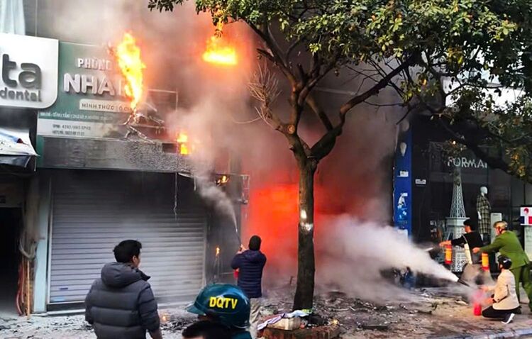 Lực lượng chức năng chữa cháy nhà 6 tầng ở phố Lê Lợi, phường Hà Đông, TP Hà Nội (tháng 1-2026). Ảnh: TUẤN SƠN