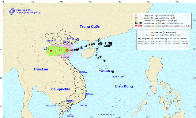 Dự báo trong 24 giờ tới, bão di chuyển theo hướng Tây, mỗi giờ đi được khoảng 10 km, như vậy sáng sớm nay (17-8) vùng tâm bão sẽ đi vào đất liền tỉnh Thanh Hóa và suy yếu thành áp thấp nhiệt đới, sau đó áp thấp nhiệt đới tiếp tục đi sâu vào đất liền và suy yếu thành một vùng áp thấp trên khu vực Thượng Lào. Đến 4 giờ ngày 18-8, vị trí trung tâm vùng áp thấp ở khoảng 19,7 độ Vĩ Bắc; 103,3 độ Kinh Đông. Sức gió mạnh nhất ở trung tâm vùng áp thấp giảm xuống dưới cấp 6 (dưới 40 km/giờ).