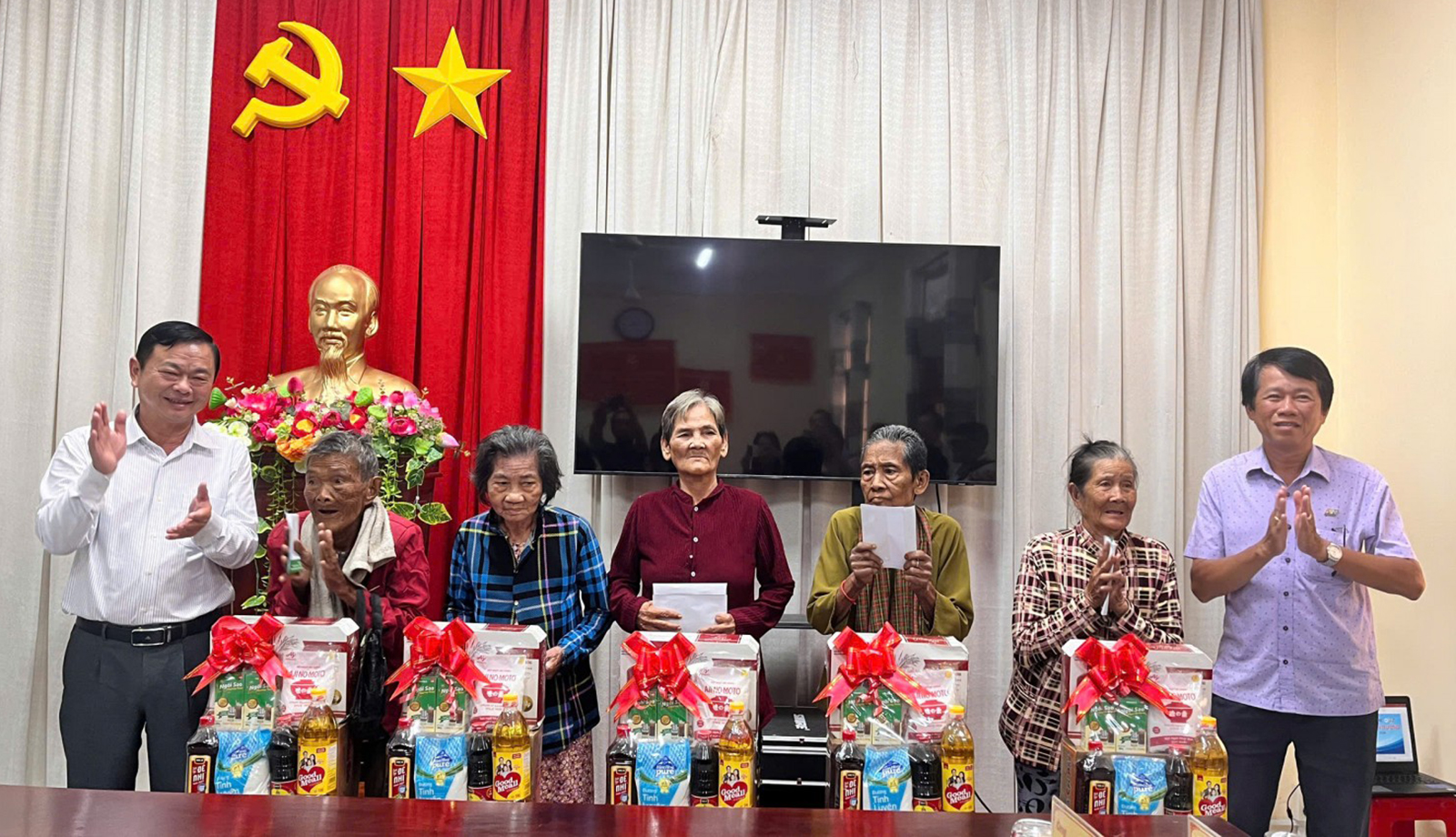 Dịp này, Ban Biên tập Báo và Phát thanh - Truyền hình An Giang; Ban Quản lý Di tích văn hóa Óc Eo tỉnh An Giang trao tặng 5 phần quà cho gia đình chính sách, hộ nghèo, khó khăn trên địa bàn xã Óc Eo, mỗi suất quà trị giá 1 triệu đồng (gồm quà và tiền mặt).