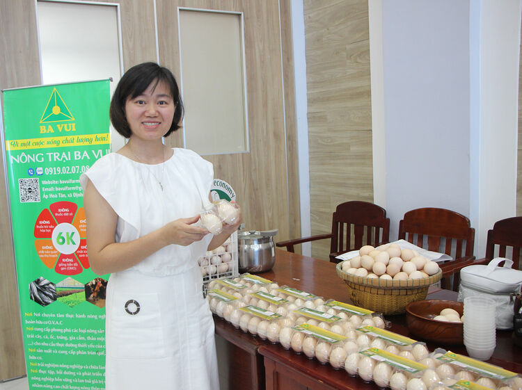 Bà Vũ Thị Hoa phát triển hệ sinh thái nông nghiệp bền vững tại xã Định Mỹ. Ảnh: ÁI NHÂN