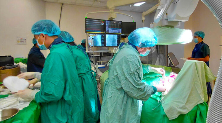 Ê kíp Khoa Tim mạch can thiệp (Bệnh viện Đa khoa An Giang) cấy máy phá rung tự động, cứu sống bệnh nhân.