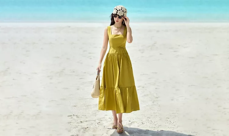 Dáng váy không tay cổ vuông khéo chiều chuộng quý cô yêu thích sự kín đáo nhưng vẫn thông thoáng mà dịu dàng. Thiết kế thường đi cùng bản vai nhỏ, tùng xòe nhẹ tôn eo và có thể kết hợp cùng giày cao gót, xăng đan, giày thể thao... một cách linh hoạt tùy theo mục đích sử dụng. ẢNH: SPEAL