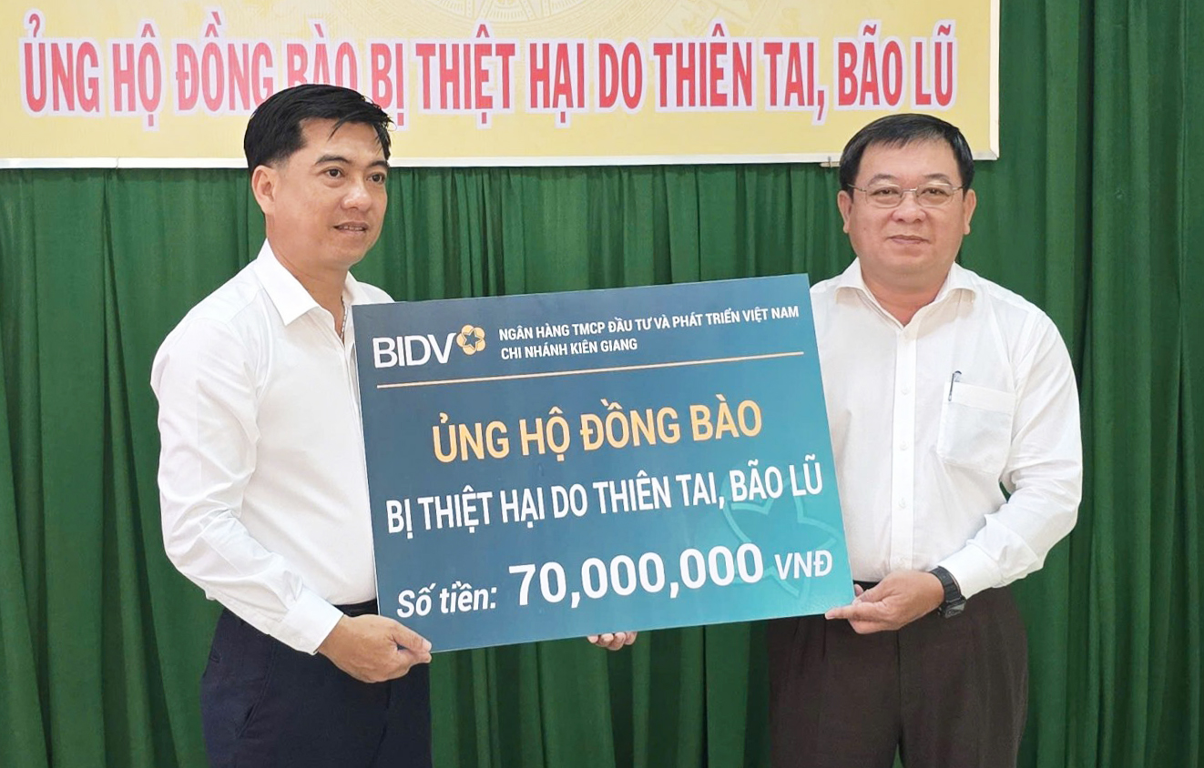 Bí thư Đảng ủy, Giám đốc BIDV chi nhánh Kiên Giang Ngô Xuân Hiền cho biết, số tiền trên được đơn vị quyên góp từ nguồn vận động 1 ngày lương của cán bộ, nhân viên người lao động.