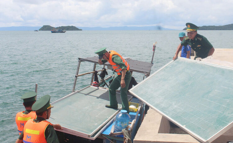 Theo đó, cán bộ, chiến sĩ cùng các giáo viên, người dân vận chuyển gần 50 thiết bị, bàn ghế, bảng viết… từ trung tâm xã Tiên Hải đến các điểm trường trên đảo Hòn Đước và Hòn Giang.
