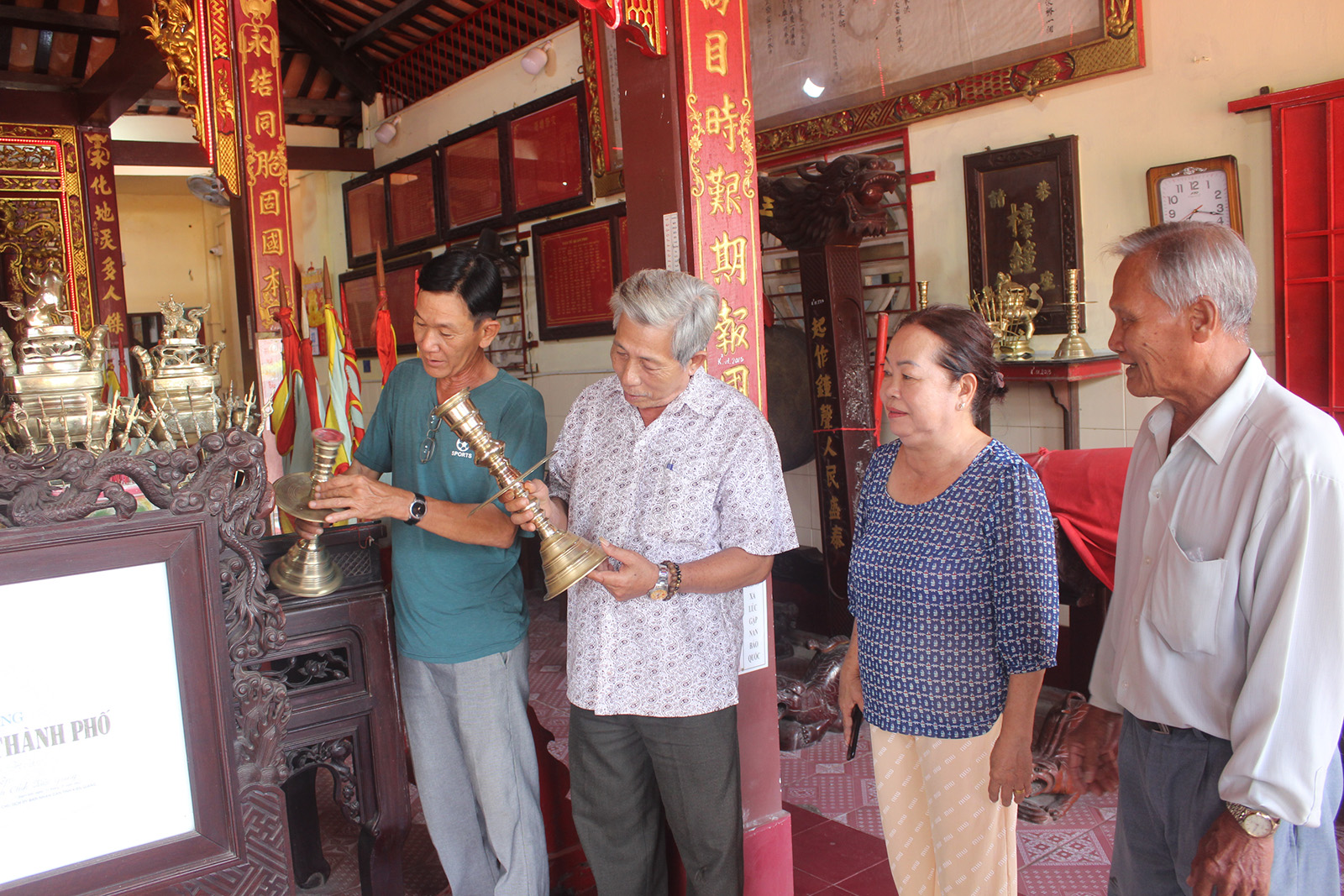 Ban Bảo vệ Di tích lịch sử văn hóa Đình thần Vĩnh Hòa Hiệp chuẩn bị cho lễ hội. Ảnh: MỘC TRÀ