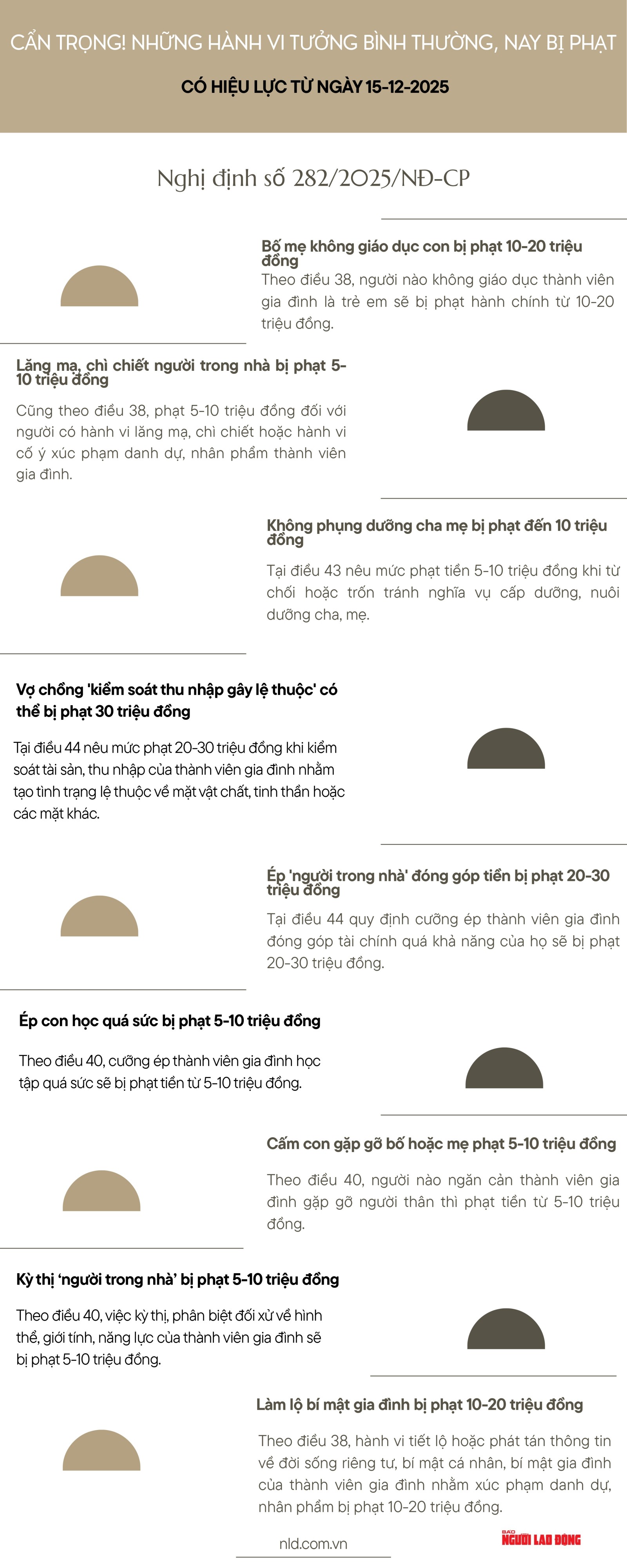 Theo Nghị định 282/2025/NĐ-CP, các hành vi trong gia đình lâu nay tưởng chừng bình thường nhưng nay vi phạm sẽ bị phạt rất nặng.