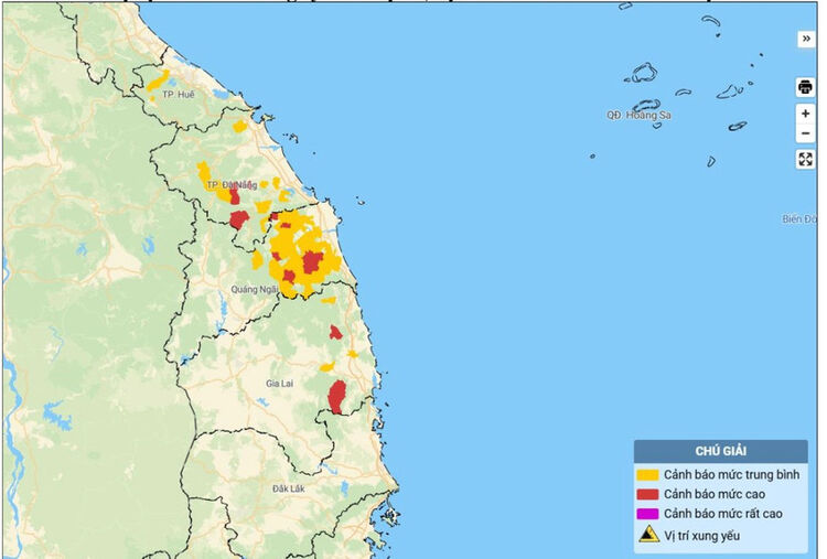 Trong 6 giờ tiếp theo nguy cơ xảy ra lũ quét trên các sông, suối nhỏ, sạt lở đất trên sườn dốc tại nhiều xã/phường: