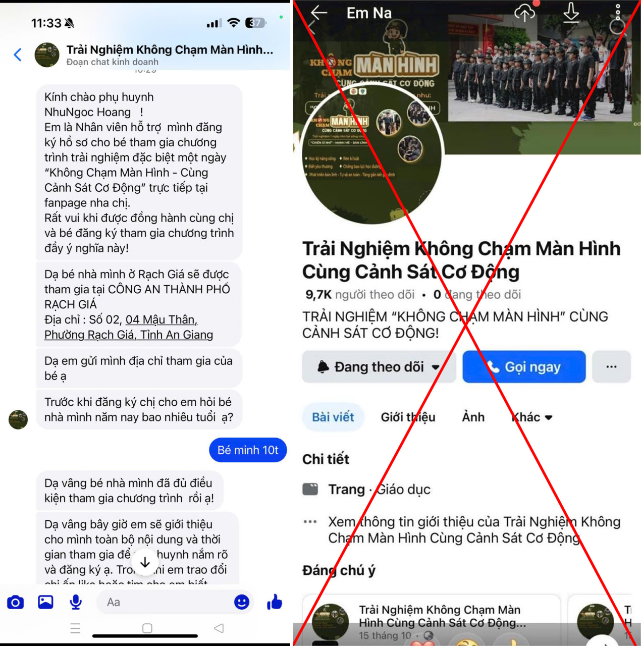 Tại tỉnh An Giang, đã ghi nhận trường hợp một số phụ huynh tại phường Rạch Giá bị lôi kéo tham gia “chương trình trải nghiệm” được giới thiệu tổ chức tại Công an phường Rạch Giá. Khi đăng ký, các đối tượng yêu cầu cung cấp thông tin cá nhân của trẻ và người thân, có dấu hiệu lợi dụng để thực hiện hành vi vi phạm pháp luật.