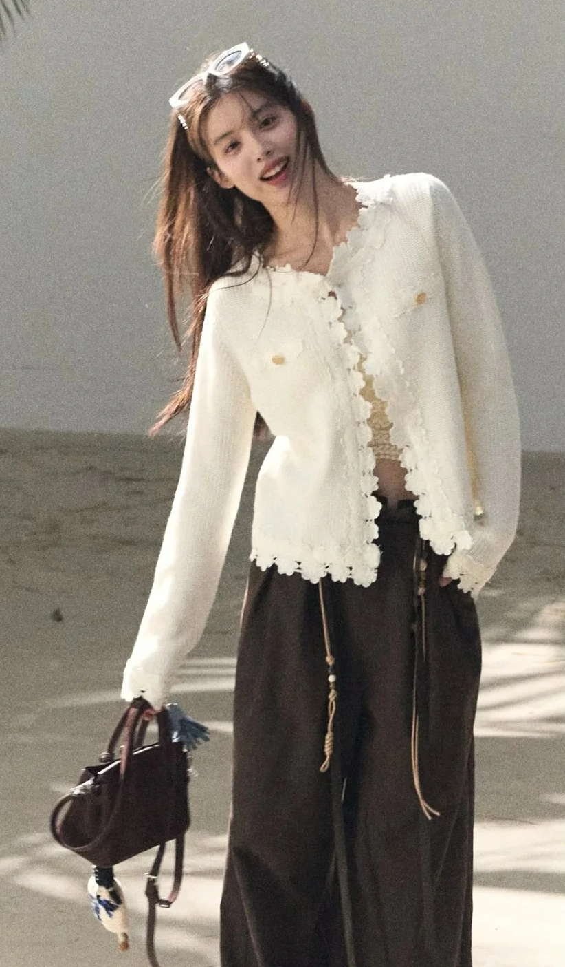 Áo len cardigan cổ chữ V mang đến sự tươi vui để nàng bắt đầu một ngày mới, tuần mới đầy hứng khởi. Bản phối quần jeans xanh đậm, áo babydoll vải tơ mềm, giày cao gót đen và điểm nhấn mang sắc đỏ rạng rỡ khoe trọn nét thanh xuân. ẢNH: ROEM