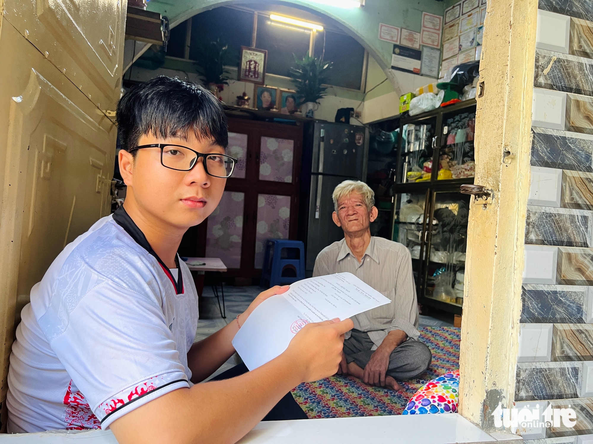 Cháu ngoại đậu đại học, ông Triệu Phương tự hào xen lẫn lo lắng về khoản học phí - Ảnh: YẾN TRINH