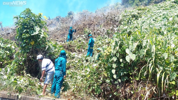 Trước tình hình này, lực lượng chữa cháy phải sử dụng xô chậu múc nước dập lửa, đồng thời phát quang tạo đường băng khoanh vùng, không cho lửa cháy lan ra các khu vực khác.