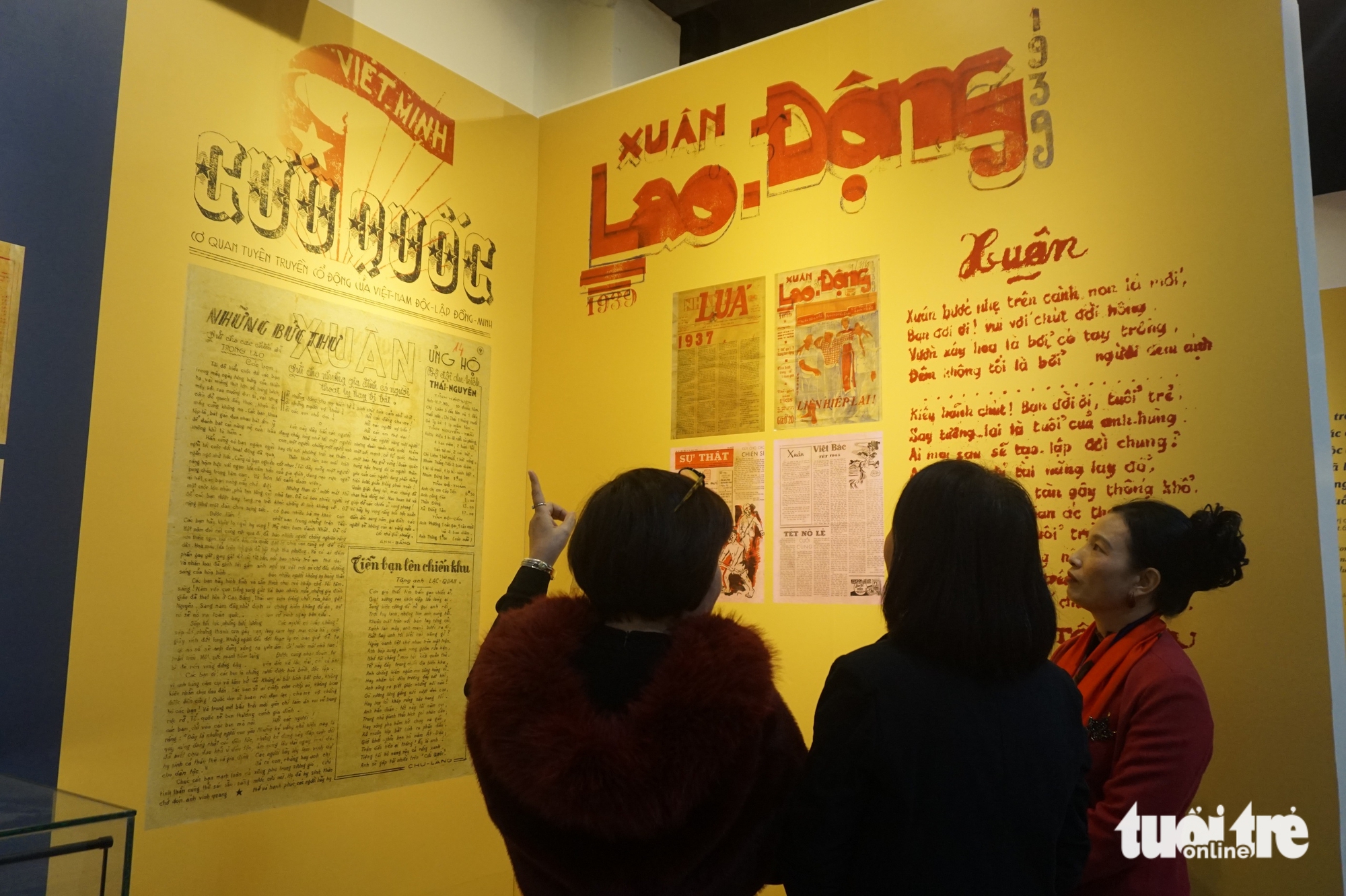 Hào hứng xem những tờ báo cách mạng số xuân xuất bản trước năm 1945 - Ảnh: T.ĐIỂU