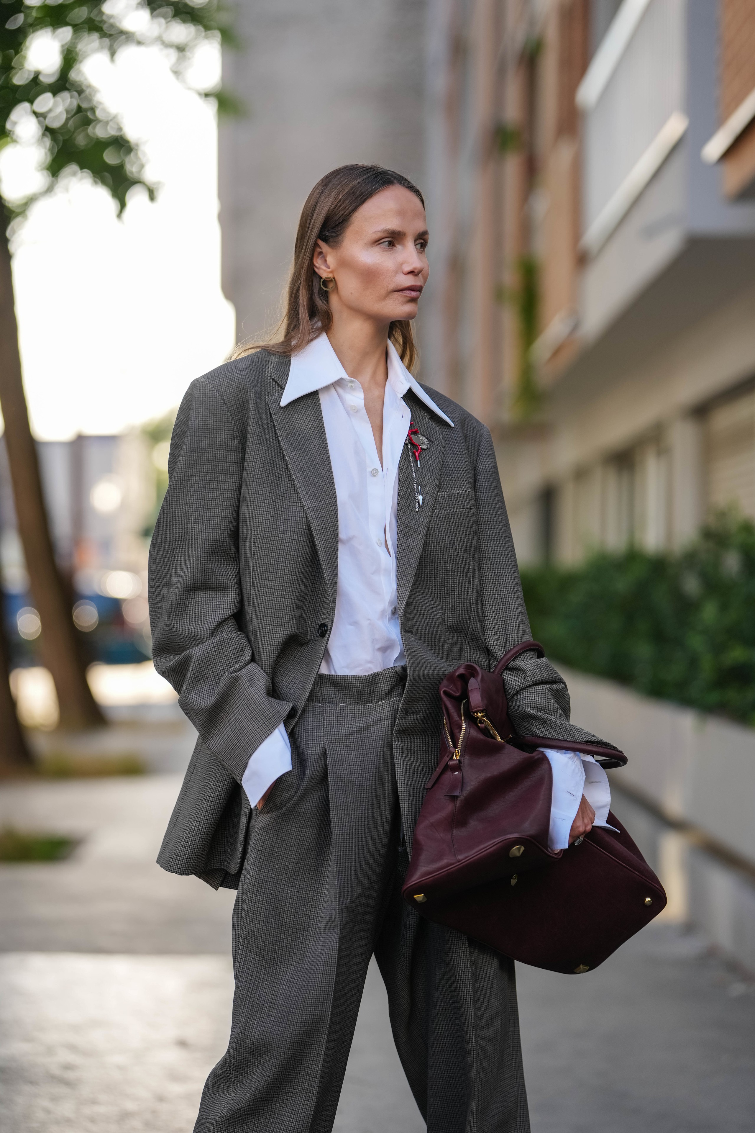 Bạn sẽ không thể sai lầm khi kết hợp một bộ suit cùng tông, với phom dáng maxi và phom dáng oversized. ẢNH: @NATASHA POLY
