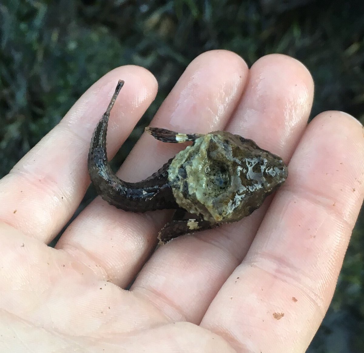 Ẩn mình ở vùng nước nông gần bờ biển Bắc Mỹ, cá săn mồi đầu đá là loài có kích thước nhỏ, cơ thể phủ lớp giáp cứng và thường ngụy trang như đá hoặc bọt biển - Ảnh: Mike Kelly