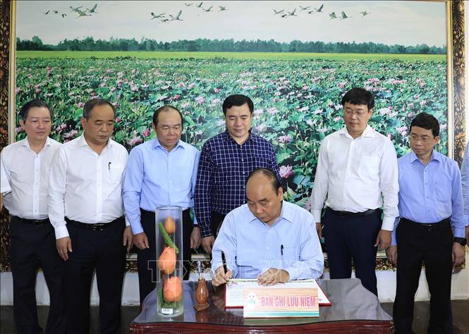 Chủ tịch nước Nguyễn Xuân Phúc viết cảm tưởng vào Sổ vàng tại Khu di tích cụ Phó bảng Nguyễn Sinh Sắc. Ảnh: Thống Nhất/TTXVN