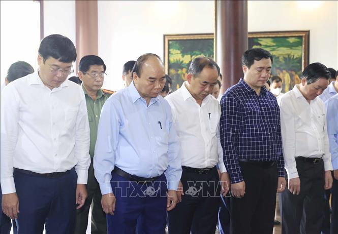 Chủ tịch nước Nguyễn Xuân Phúc tại Khu di tích cụ Phó bảng Nguyễn Sinh Sắc. Ảnh: Thống Nhất/ TTXVN